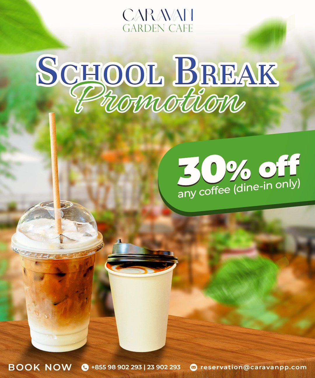 School break tastes better with 30% off your favorite coffee. Recharge in style at Caravan Garden Cafe at Caravan Hotel by EHM.